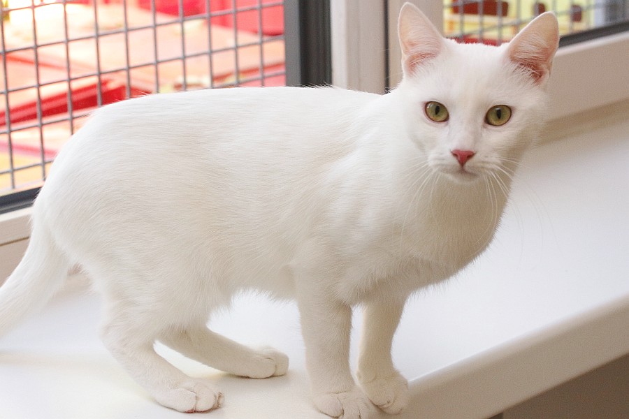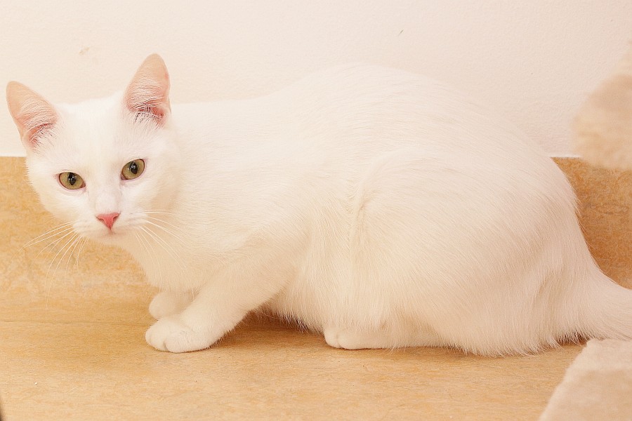 Elsa ist eine süße reinweiße Kurzhaarkatze mit gelben Augen, die gemeinsam mit ihrem Bruderkater in Wohnungshaltung lebte. Wegen finanzieller Schwierigkeiten verloren die beiden ihr Zuhause und landeten bei uns. Elsa verhält sich bei uns freundlich, ist aber auch recht lebhaft und freut sich über Beschäftigung.  Da sie vermutlich einer orientalischen Rasse angehört ist ihr Miauen  entsprechend manchmal lauter. Wir suchen für sie ein Zuhause in Wohnungshaltung gemeinsam mit ihrem Bruderkater. Elsa kennt weder  Hunde noch kleine Kinder. Wer möchte ihr ein Zuhause geben?