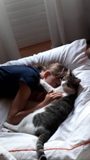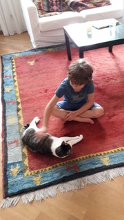 Sie scheint sehr zufrieden mit ihrem neuen Zuhause! Sie saust bereits – vor allem wenn es Futter gibt – zielgerichtet durch die Wohnung! und freut sich über Streicheleinheiten, für die sie sich mit Schnurrorgien bedankt!