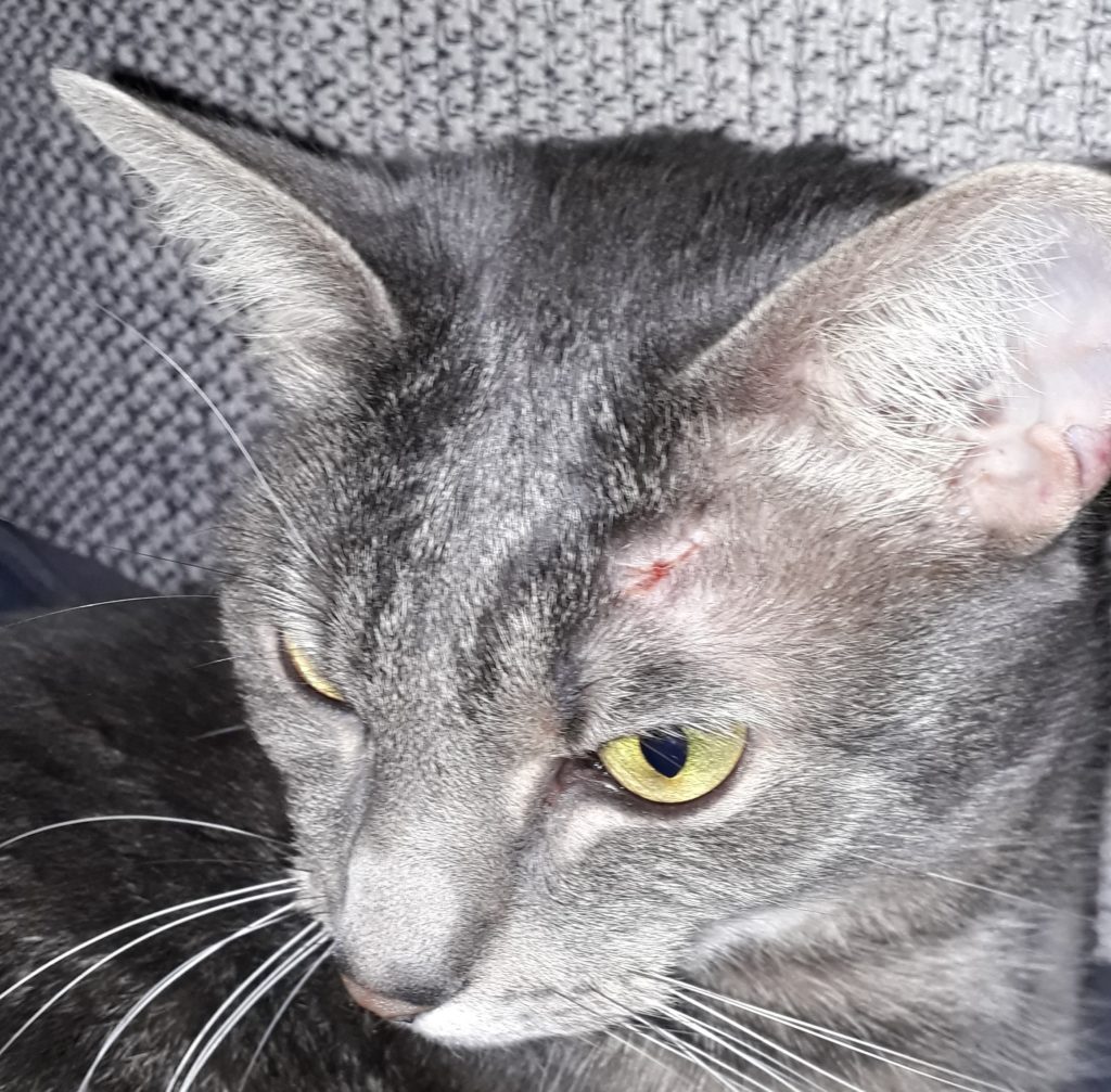 Ich sende euch noch ein Foto von der kleinen “Warrior cat ” mit dem Cut das sie sich bei ihrem “Kampf” zugezogen hat!