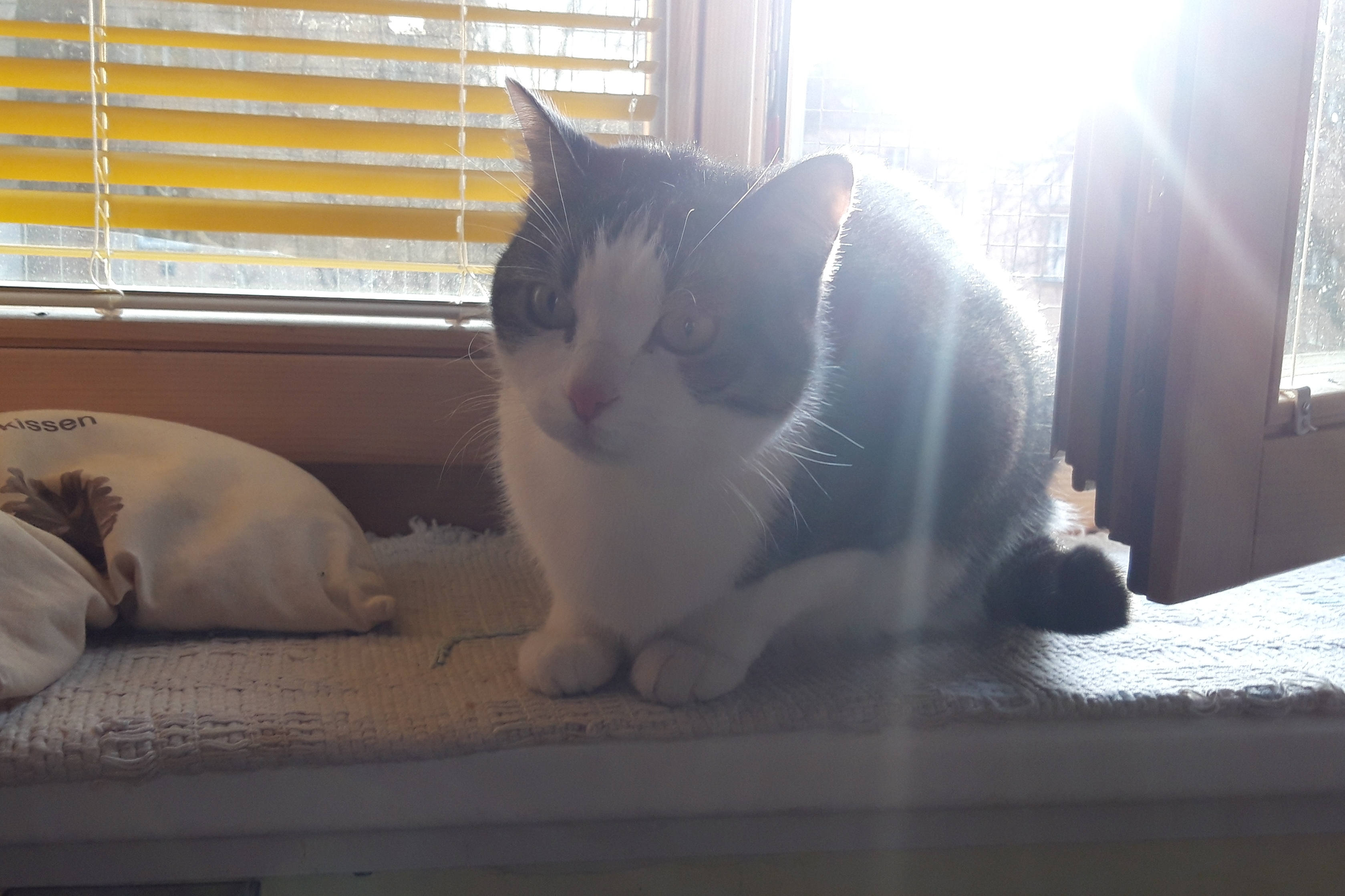 Liebe Katzenfreunde, Luka – vormals Garibaldi – hat sich schon recht gut an seine neue Wohnung gewöhnt, er streift gern herum, sein Lieblingsplatz ist das offene Fenster. Seit heute kann man sich auch in der Wohnung bewegen,ohne dass er gleich verschwindet. Trotzdem verkriecht er sich auch gern in der Bettzeuglade unter dem Sofa. Er frisst und benützt brav das Kisterl. Insgesamt ist er natürlich noch ein bisschen unsicher und unrund, aber ich bin sicher, dass sich das legen wird.
