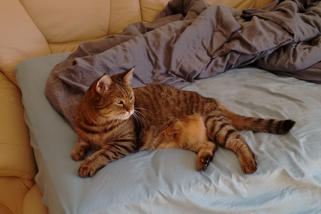 Beim Einschlafen denken wir dann an die anderen Katzen im Katzenhaus und schicken ihnen, vor allem Mimi, gute Gedanken und Wünsche, damit sie auch bald einen guten Platz finden mögen.
