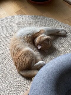 Gleich nach dem Ankommen im neuen Zuhause habe ich alles gründlich inspiziert und für in Ordnung befunden. Dann hab ich ein Baldriankissen gefunden, ordentlich eingespeichelt und seither finde ich es super hier!
